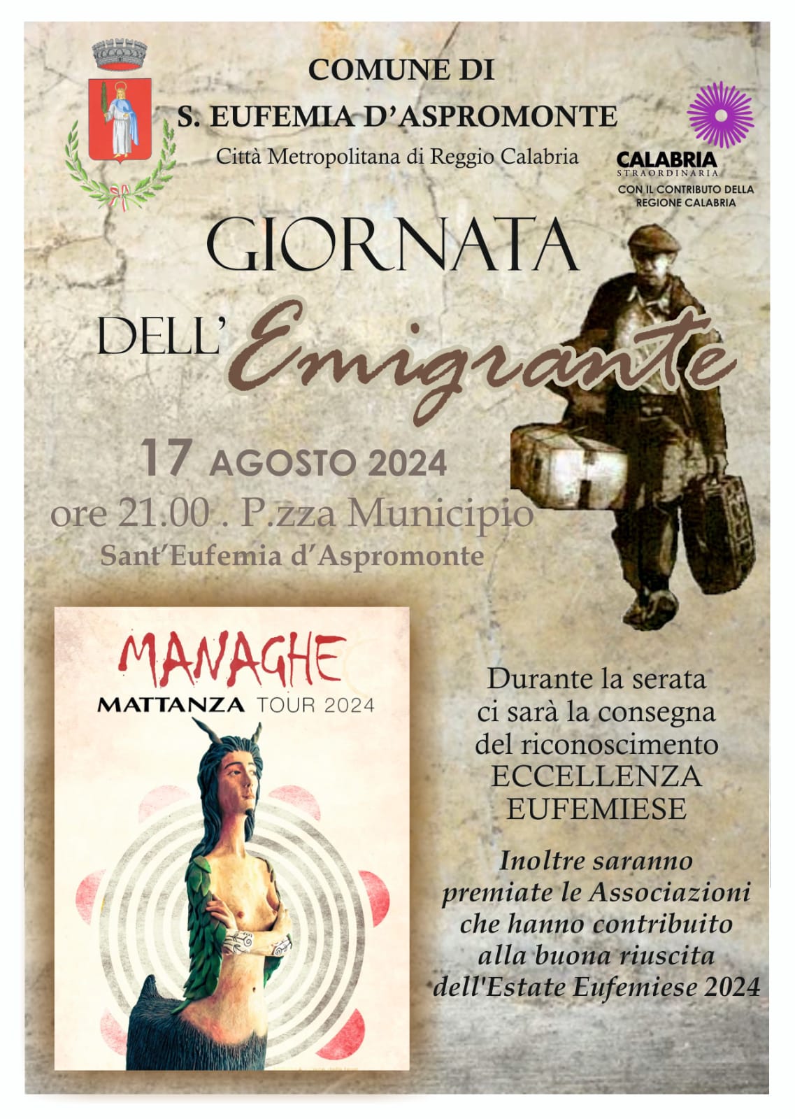 Durante la serata ci sarà la consegna del riconoscimento ECCELLENZA EUFEMIESE